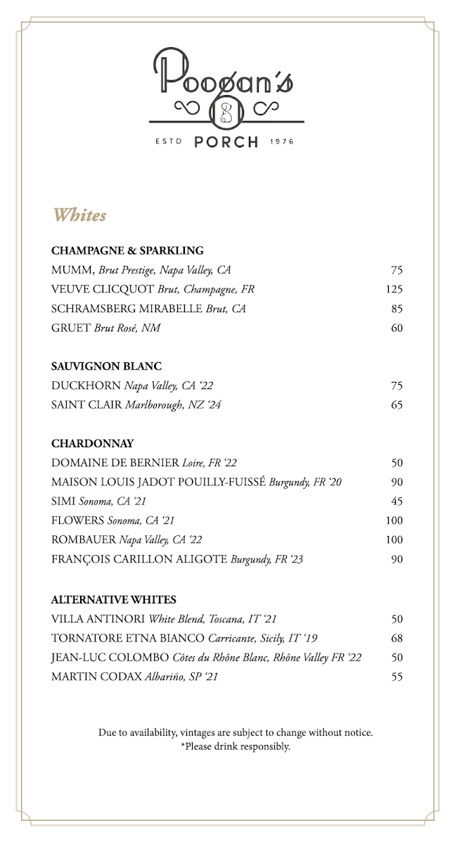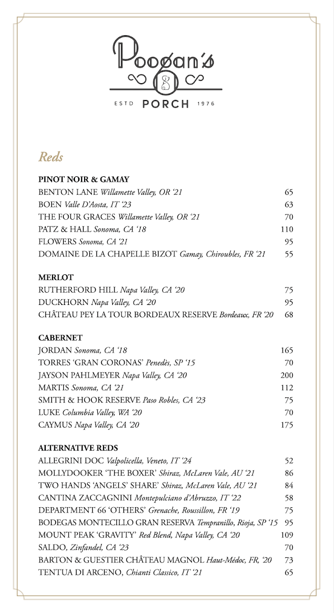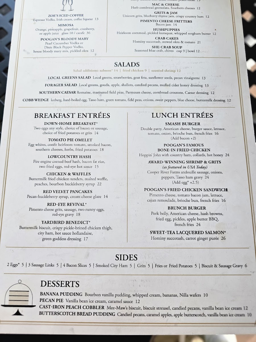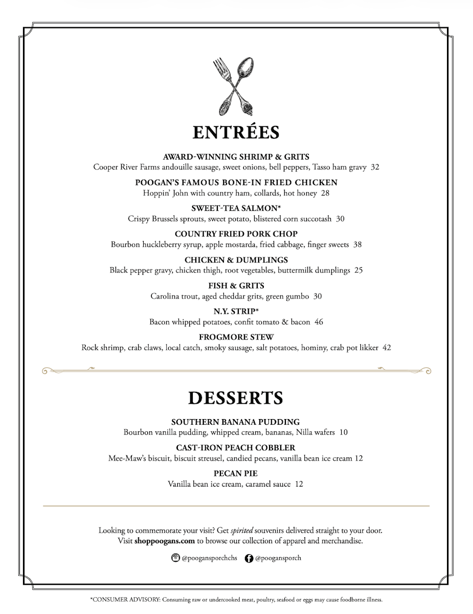 Poogan's Porch Menu